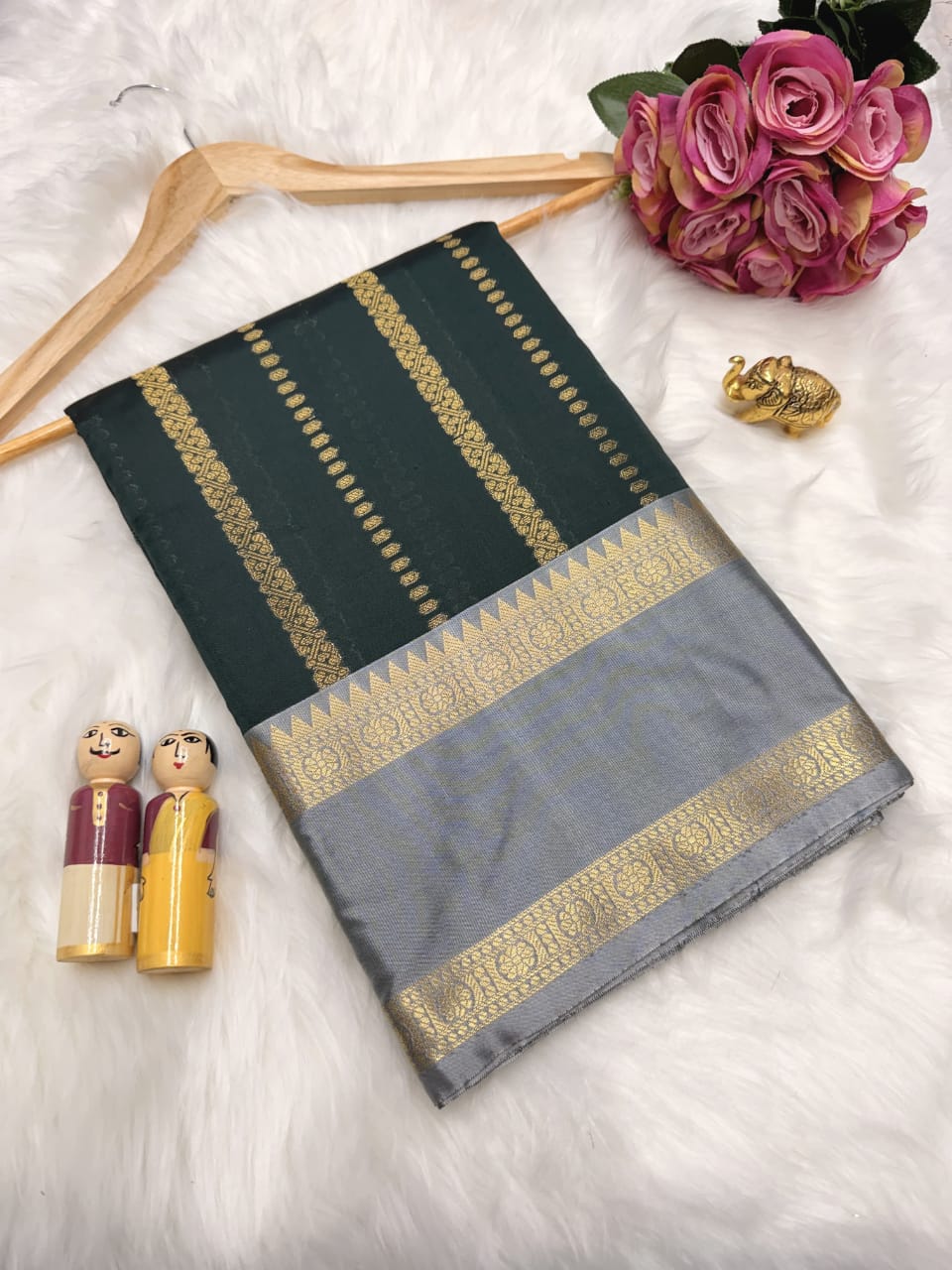 Be the first to review “Katan Silk Saree -Leaf Green”