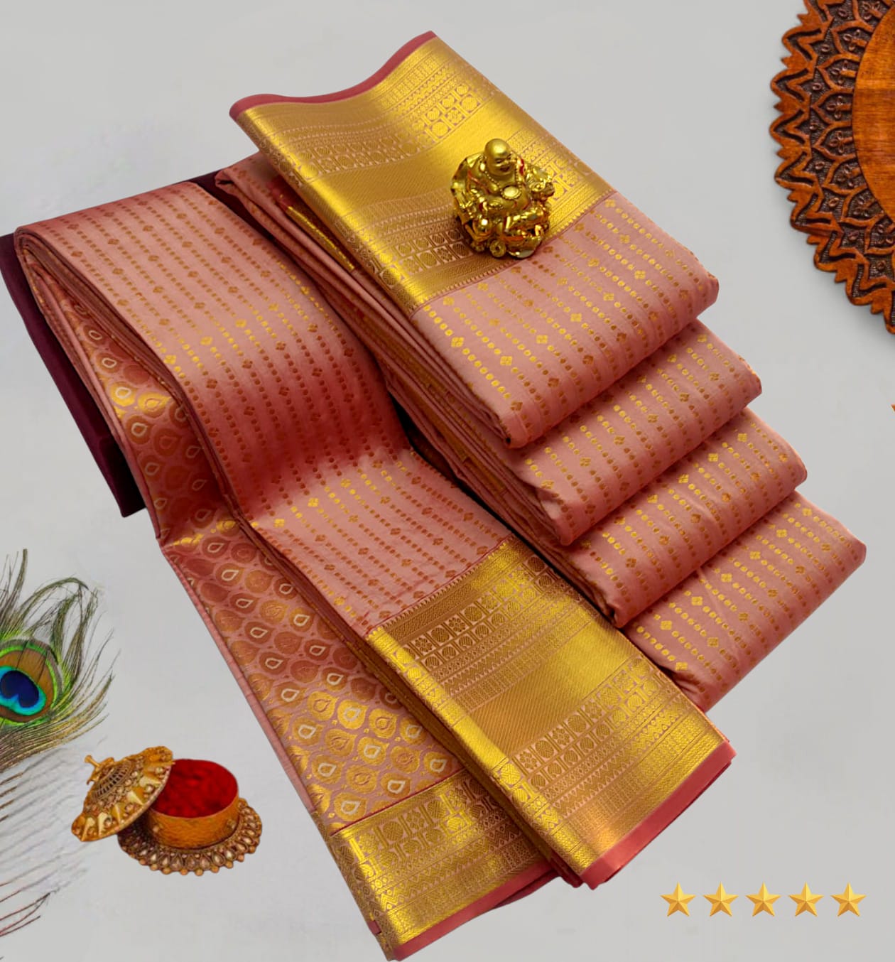 Peach Pink Color with Gold Zari Kanchipuram Silk Saree